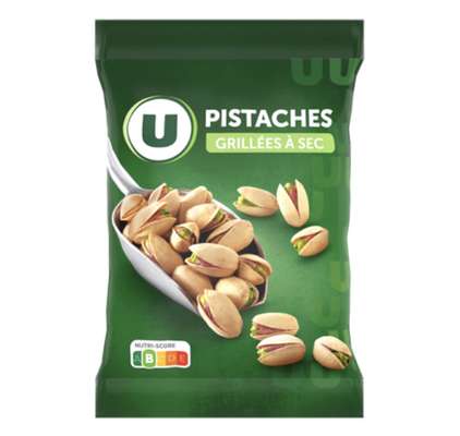 PISTACHES 98 %, sel 2%. Certains ingrédients de ce produit ne proviennent pas de France. Traces éventuelles d'arachides, céréales contenant du gluten, autres fruits à coque et soja.