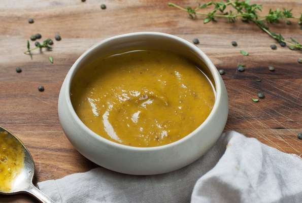 Une ravissante soupe où la douceur des lentilles blondes se mêle au sucré de la patate douce. À consommer sans modération.