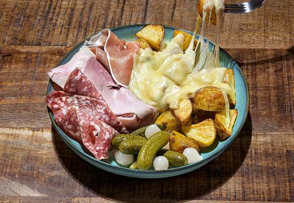 Une bonne raclette au bureau ? Oui oui c'est possible ! Et avec nos meilleurs produits, ça donne ça : des pommes de terre bio rôties à souhait, un assortiment de charcuteries artisanales extra-savoureuses et sans nitrite, quelques cornichons pour ajouter du goût, et de belles tranches de raclette braisées à faire fondre sur le dessus. Comme quoi, parfois, ça a du bon de ne pas partager...