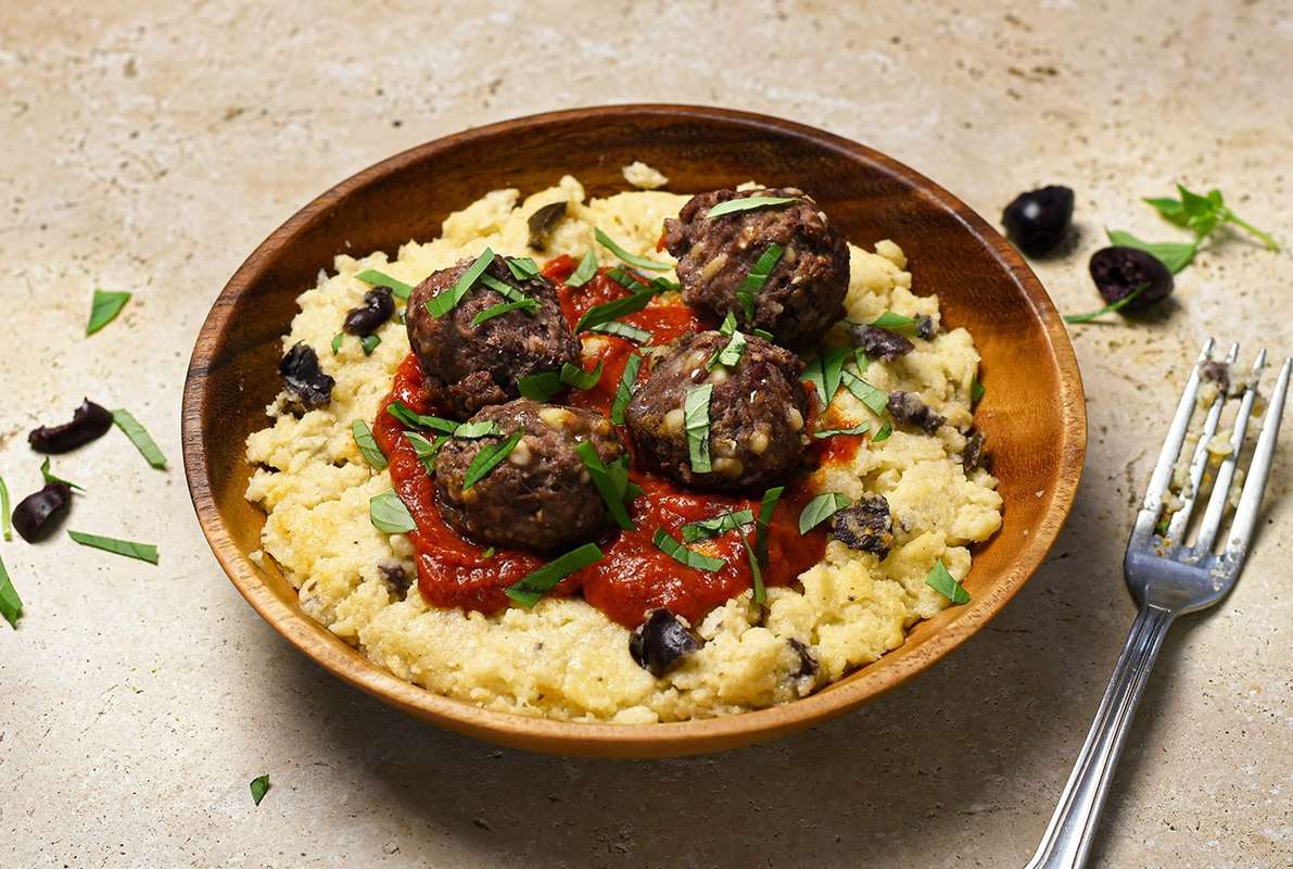 Tout le monde aime les boulettes ! Chez Frichti, on les aime encore plus quand elles sont fumées, accompagnées d'une polenta crémeuse aux olives noires de Kalamata et nappées d'une généreuse sauce tomate au basilic frais.