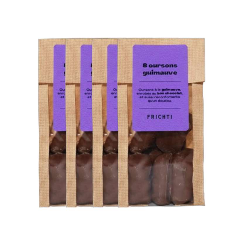 Lot de x 4 Oursons guimauve de Noël chocolat lait, Frichti (105 g)